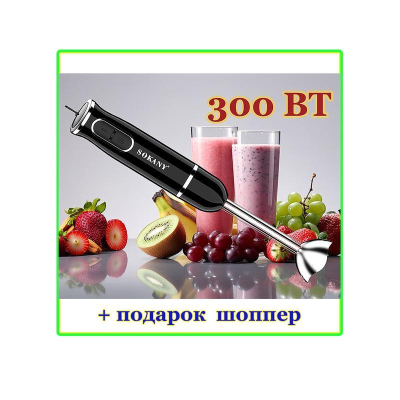 Виробник: Інший виробник Блендер Sokany SK-1722 + шоппер сумка у подарунок Тип блендера Занурювальний Потужність 300 Тип управління Механічне Кількість швидкостей 2 Матеріал корпусу Пластик Колір Чорний Матеріал заглибної частини нержавіюча сталь Габариты (ВхШхГ) 7,2x40 см Гарантійний термін 6