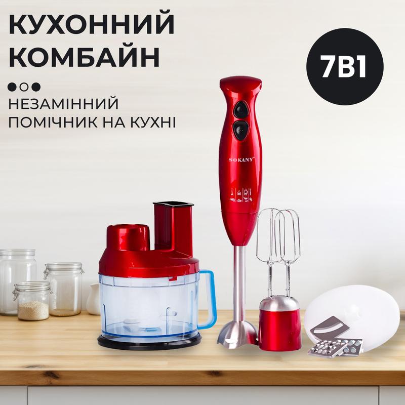 Кухонный комбайн Sokany SM-5011-7 – это незаменимый помощник на вашей кухне, который включает в себя блендер, миксер, соковыжималку и мясорубку. Этот набор обеспечит широкие возможности для приготовления различных блюд и напитков. Кухонный комбайн оснащен двумя режимами скорости, что позволяет выбрать оптимальный режим в зависимости от потребностей. Вы сможете легко регулировать скорость смешивания и добиваться желаемой консистенции. С мощностью 600 Вт блендер обеспечивает достаточную энергию для быстрого и эффективного измельчения или смешивания различных ингредиентов. Вы сможете легко приготовить смузи, пюре, соусы и другие кулинарные шедевры. В комплекте идет блендер с острым лезвием, измельчитель объемом 700 мл с лезвиями из нержавеющей стали, крюки для тестомеса и венчик. Съемные насадки облегчают использование и чистку. Погружная часть изготовлена из нержавеющей стали, что обеспечивает ее прочность и долговечность. Комбайн также имеет низкий уровень шума, что делает его более удобным в использовании. Sokany SM-5011-7 также имеет защиту от брызг, что предотвращает возможные разбрызгивания и разливы во время работы. Компактный дизайн делает этот набор удобным и легким в хранении и использовании. Он занимает минимум места на вашей кухне, но при этом сохранит все необходимые функции для приготовления разнообразных блюд. Кухонный комбайн SM-5011-7 – это надежный и универсальный помощник на вашей кухне, который поможет вам быстро и легко приготовить разнообразные блюда и напитки.