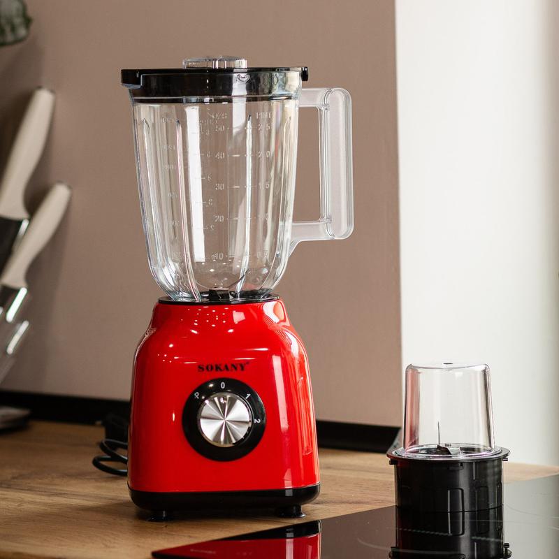 Блендер портативный 2 в 1 с чашей 1,5 л и 3 режима скорости 500 вт sokany sk-168 красный v...