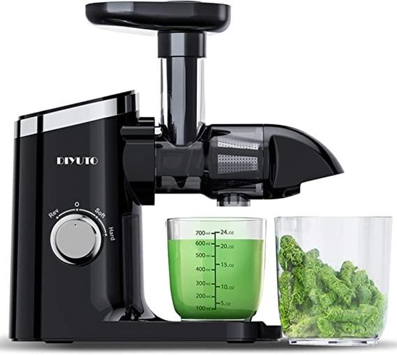Блендер Diyuto, блендер для овощей и фруктов, блендер холодного отжима, 2-скоростной блендер, Максимальное количество питательных веществ - 90% чистого сока, Функция реверса, Бесшумный двигатель Цвет Черный Материал пищевой пластик Марк DIY вес продукта 3 килограмма Размеры изделия: длина х ширина х высота 33 х 29,5 х 19,5 сантиметров Мощность 150 Вт Способности 700 миллилитров Об этом продукте ▶【2-скоростные режимы】: 2-скоростной блендер холодного отжима SOFT/HARD может извлекать различные виды волокнистых фруктов и овощей. SOFT MODE (85-100RPM) для мягких фруктов и овощей; HARD MODE (95 -110RPM) для жесткого, который может удовлетворить ежедневные потребности семьи. ▶【Максимальное количество питательных веществ - чистота сока 90%】: Благодаря новейшей технологии низкой скорости, 3-ступенчатому фильтру из нержавеющей стали и 7-сегментному спиральному жевательному аппарату, соковыжималка холодного отжима Diyuto позволяет полностью измельчать фрукты и овощи. снижение скорости окисления, выход сока до 90%, что лучше сохраняет витамины и питательные вещества. ▶【Профессиональный блендер холодного отжима - 100% сертифицированная гарантия качества】: Блендер холодного отжима Diyuto сертифицированный CE в соответствии с европейскими требованиями безопасности. Безопасные материалы и крохотная воронка для кормления, разработанная в соответствии с требованиями безопасности ЕС, помогают предотвратить травмы рук и обеспечивают безопасность во время использования. ▶【Тихий и легкий в очистке】: Легкий, экологически чистый и тихий (≤60 дБ) блендер холодного отжима. Система крепления одним нажатием позволяет легко собрать, разобрать и почистить блендер. Блендер холодного отжима с функцией REVERSE, чтобы предотвратить засор и помочь вам очистить.