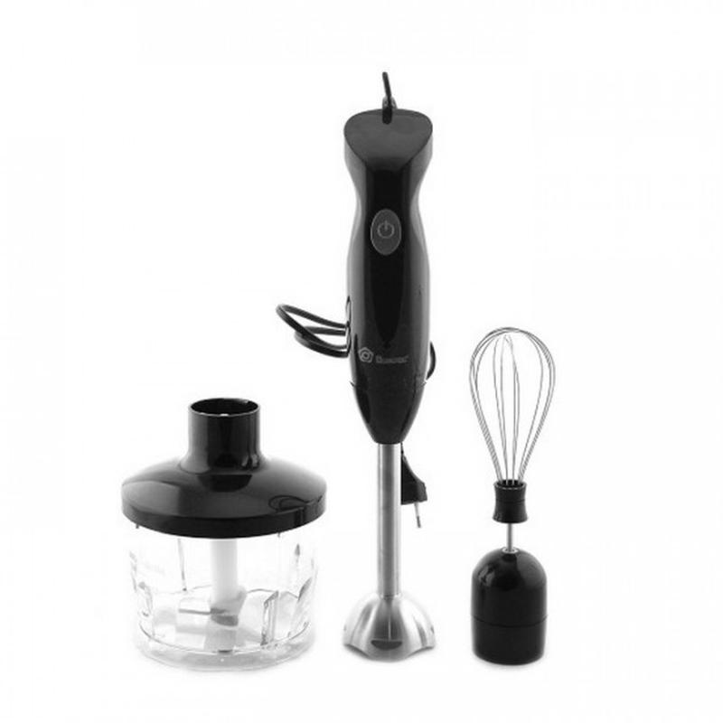 Блендер Domotec MS 5103 - это настоящий агрегат, который выполняет множество функций, благодаря сменным насадкам. Идущий в комплекте венчик позволяет смешивать жидкие продукты, взбивать коктейли, безе и легкие муссы. Приготовить детское пюре из вареных овощей и фруктов поможет специальная насадка для пюре, а стандартная блендерная насадка эффективно справляется со смешиванием и взбиванием супов-пюре, однородных соусов и подлив, а так же коктейлей. Блендер имеет компактные размеры, но при этом обладает хорошей мощностью в 500 Вт. Помимо моторной части в комплекте имеется несколько насадок, чаша для измельчения овощей. Режущие детали измельчителя, венчик и погружная часть блендера выполнены из высококачественной нержавеющей стали. Особенности: * Эргономический дизайн * Мощность: 500 Вт * Материал корпуса: пластик * Материал ножей: сталь * Длина сетевого шнура: 1 м * Количество скоростей: 2 * Объем кувшина: 0.6 л * Плавная регулировка скорости * Цвет корпуса: чёрный. Комплектация: * Блендер * Мини-измельчитель * Венчик.