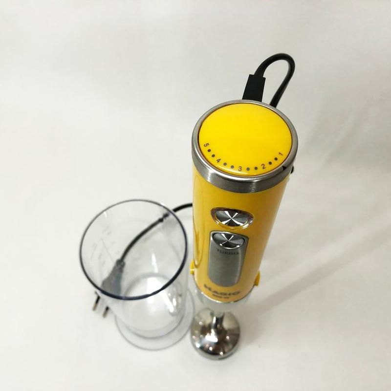 Блендер переносной Magio MG-646 800 Вт | Блендер для молочных коктейлей | Миксер LX-396 блендер ручной Блендер Magio MG-646 позволит вам разнообразить ваше меню и приготовить новый кулинарный шедевр Мощность блендера составляет 800 Вт, что обеспечивает бесшумную эффективную работу в течение длительного времени Погружная часть выполнена из нержавеющей стали -- залог устойчивости к износу и долговечности Блендер может работать на 13 плавно переключающихся скоростях Переключатель находится на рукоятке прибора, что весьма удобно В комплект входит пластиковый мерный стакан Эти свойства в сочетании с компактным дизайном делают блендер незаменимым помощником на вашей кухне Характеристики: - Тип: погружной блендер - Мощность: 800 Вт - Тип управления: механическое - Материал ножки блендера: нержавеющая сталь - Материал корпуса: пластик - Скорости: 13 шт - Мерный стаканчик: 600 мл - Скоростной режим: турбо - Гибкий спиралевидный шнур для комфортного использования и хранения - LED подсветка - Эргономическая рукоятка - Ножка и ножи блендера из нержавеющей стали - Надежная фиксация - Низкий уровень шума - Цвет: желтый - Производитель: Magio Основные функции: - Измельчение - Смешивание - Материал корпуса: Пластик, Металл - Количество скоростей: 13 - Тип блендера: Погружной - Потребляемая мощность: 800 - Режим Турбо: Нет - Импульсный режим: Да - Состояние: Новое - Цвет: Желтый - Страна производитель: Китай - Тип управления: Механическое - Производитель: Magio Условия доставки - Новая почта - Укрпочта - Точка выдачи Rozetka Условия оплаты - Наложенный платеж! - Оплата на рассчетный счет! - Безопасная сделка (ПромОплата, Олх доставка) - Предоплата на карту! У НАС ПОКУПАТЬ ВЫГОДНО: - Заказы до 17:00 отправляются в этот же день! - Большущий выбор товаров импортированных напрямую с Китая! - Свои фото и видео товаров! - Актуальное наличие товара! - Все виды доставки и оплаты! - - Продажа товаров точно по цвету! Вы получаете товар, который на фото! - Много довольных клиентов! Как мы работаем Оформление заказа Оформляйте заказ через сайт Подтверждение заказа Менеджер связывается с Вами для уточнения способа оплаты и доставки. Доставка Мы быстро отправляем Вашу посылку. Получение товара Получаете товар и осматриваете его. После этого оплачиваете товар.