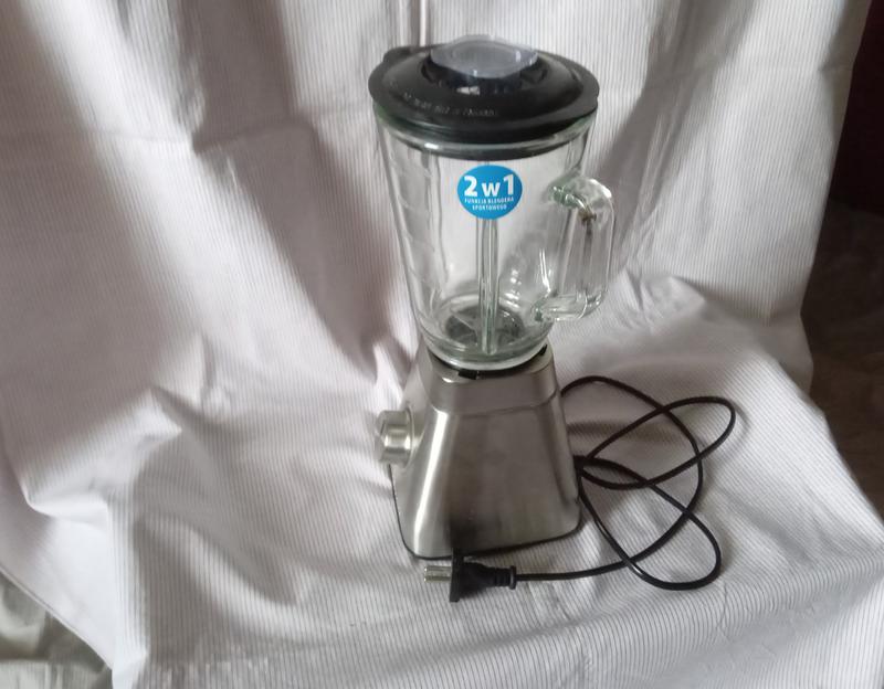 Сучасний,надійний. Використовувася лише единий раз. Потужність 600 Вт Має 2 швидкості,метал корпусу-нержавійка. Глечик має об"єм 1 л, матеріал- міцне скло. Ніж на 4 леза-нержавійка. Протислизьки ніжки. Блендер надсилаю лише Новою Поштою.
