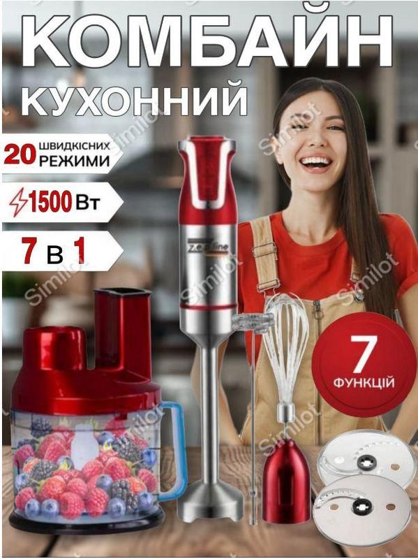 Многофункциональный блендер 7в1 zepline 1500вт zp-798 ручной погружной с чашей и венчико...