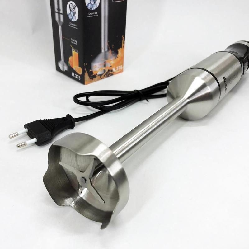 Блендер Domotec/RAF R-378 1600W изготовленные из высококачественных материалов, сочетают в себе стильный дизайн и функциональность. Устройство оснащено современным двигателем нового поколения, который обеспечивает повышенную мощность при сниженном энергопотреблении, что делает его идеальным помощником на кухне. Подходит для широкого спектра кухонных задач, включая приготовление домашних кремов, мелкую нарезку зелени, взбивание яичных белков, создание супов-пюре и детских блюд. Стойка из нержавеющей стали устойчива к брызгам, что облегчает очистку и увеличивает срок службы устройства. Две скорости работы позволяют адаптировать устройство под различные задачи смешивания.
