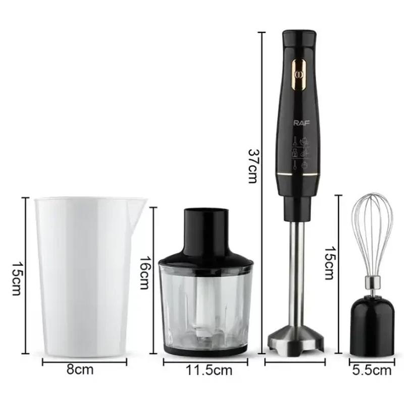 Универсальный погружной блендер 4в1, R 331W, 800 Вт, Белый / Кухонный ручной блендер с насадками и чашей Универсальный погружной блендер 4в1 R 331W - это надежное и многофункциональное устройство, которое сделает приготовление разнообразных блюд и напитков. Достоинства: Выполнен из качественных материалов Многофункциональный набор 4в1 Высокое качество В комплекте есть мерный стакан Эргономичная рукоятка Описание: Универсальный погружной блендер 4в1 модели R 331W с мощностью 800 Вт в белом исполнении является кухонным устройством, которое обеспечивает выдающуюся функциональность и высокую производительность. Этот блендер совмещает четыре разнообразные функции в одном компактном корпусе, делая его незаменимым аксессуаром в кухне. Блендер обладает мощным двигателем мощностью 800 Вт, что обеспечивает высокую производительность и позволяет легко справляться с разными задачами. Это устройство объединяет четыре функции, включая погружной блендер для смешивания и измельчения, измельчитель для обработки твердых ингредиентов, венчик для взбивания яиц и крема, а также мерный стакан. Характеристики: Тип: ручной блендер/блендер с чашей Тип блендера: погружной Мощность: 800 Вт Цвет белый Объем мерного стакана: 600 мл Длина кабеля: 1 м Скорость вращения: 10 000 - 14500 об/мин Погружная часть и лезвия: нержавеющая сталь Материал корпуса: пластик Защита от перегрева: есть Комплектация: Погружной блендер 4в1 Raf R 331W Чаша Стакан Насадка-миксер Инструкция Упаковка