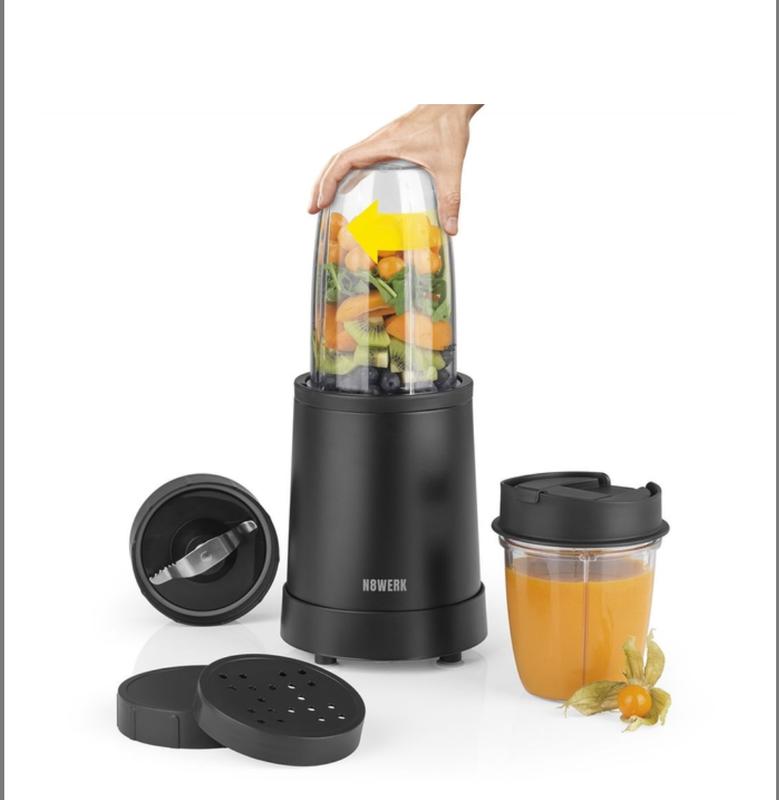 Блендер для приготовления смузи MAXXMEE N8WERK имеет незначительные потертости незаметные. С блендером MAXXMEE N8WERK вы можете быстро и легко приготовить смузи, коктейли, молочные коктейли, десерты и соусы. В зависимости от ваших потребностей блендер смешивает, перемешивает, измельчает, шинкует, взбивает и превращает в пюре широкий спектр продуктов и обеспечивает основу для ваших кулинарных творений. Миксер для пищевых продуктов MAXXMEE N8WERK также идеально подходит для приготовления пищи, поскольку он поставляется с контейнером для хранения с крышкой для хранения свежих продуктов и возможностью брать их с собой - вашу смузи можно взять прямо в офис. Еще один плюс: все съемные детали (кроме лезвия) можно мыть в посудомоечной машине. Наслаждайтесь витаминами дома. Технические подробности: Материал: АБС, ПП, АС, силикон, нержавеющая сталь. Маса (Д х Ш х В): 14,5 х 14,5 х 35,0 см Электропитание: 220 240 В 50/60 Гц Мощность: Макс 800 Вт Класс защиты: I Комплект поставки: 1 моторный блок, 1 емкость для смешивания 700 мл, 1 емкость для смешивания 350 мл или 1 насадка с 4 лезвиями по выбору, 1 насадка с поперечным лезвием, 1 крышка на вынос, 1 крышка для разбрызгивания, 1 крышка для свежести. Примечания: Устройство предназначено для измельчения и смешивания продуктов, например, как фрукты, овощи, твердый сыр, орехи, кофейные зерна или травы. Устройство не подходит для горячей пищи или жидкости.