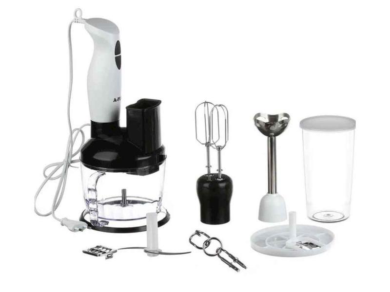 мерный стакан - используйте его, чтобы додержать рецептуру при приготовлении блюда (емкость 500мл) фуд-процессор (емкость 600мл) с насадками - применяется для шинковки и измельчения овощей и фруктов, мяса и твердых продуктов, приготовления жидкого теста. Мощность: 500 Вт Гарантийный срок: -