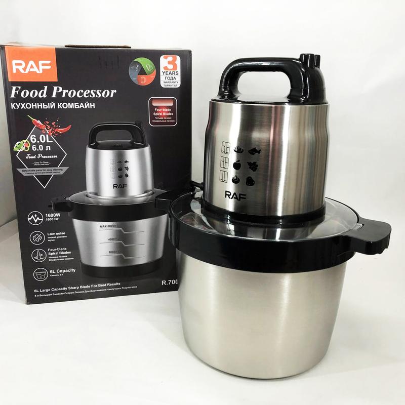 Кухонный блендер измельчитель raf r.7008 6 л 1600 вт, мощный измельчитель с чашей нержавею...