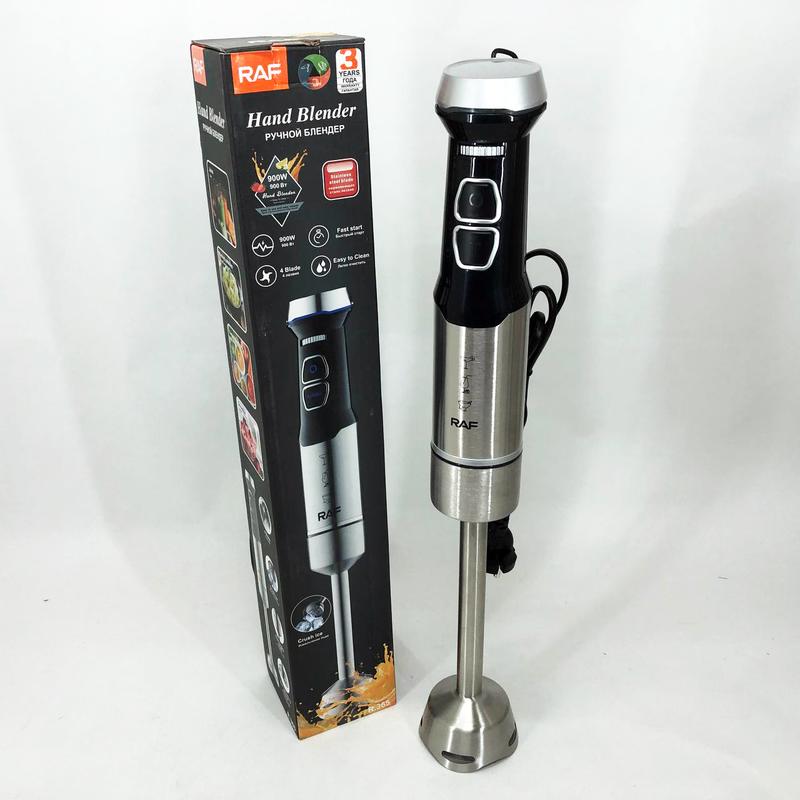 Погружающий блендер RAF – це универсальный кухонный прибор, который станет незаменимым помощником на вашей кухне. Благодаря мощному двигателю 900 Вт і удобной механической управлению, этот блендер позволяет быстро и эффективно смешивать, измельчать, взб Главное преимущество погружного блендера – це мобильность. Он не привязан к стационарной базе, поэтому вы можете использовать его непосредственно в кастрюле, чаше, глубокой тарелке или другой емкости. Это удобно, когда нужно приготовить крем-суп, фруктовое пюре или соус без лишней грязи на кухне. Основные преимущества: Мощность 900 Вт – позволяет быстро измельчать даже твердые продукты. Удобство в использовании – можно работать прямо в посуде, в которой готовится блюдо. 2 скорости работы – возможность выбрать оптимальный режим для различных ингредиентов. Механическое управление – легкое и надежное управление устройством. Питание от сети 220 В – обеспечивает стабильную работу без перебоев. Компактный и легкий – не занимает много места на кухне и легко сохраняется. Технические характеристики: Тип: погружной блендер Мощность: 900 Вт Тип управления: механическое Количество скоростей: 2 Питание: сеть 220 В
