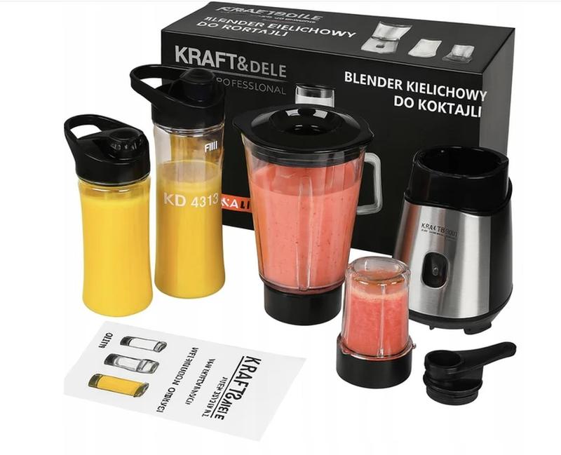 Многофункциональный блендер kraft&dele kd4113 с 2 бутылками стеклянным кувшином для коктей...