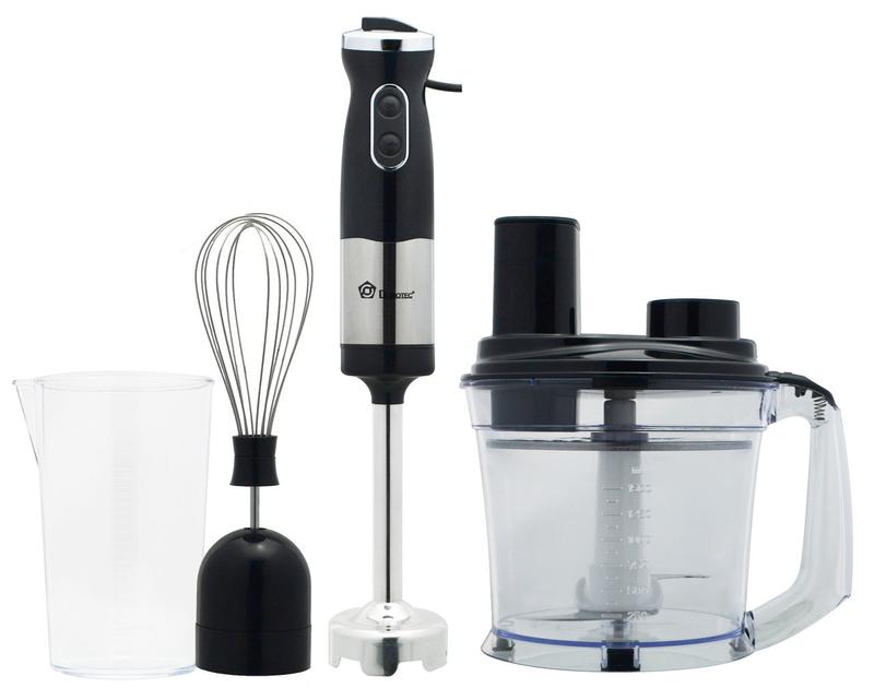 Погружающий блендер Domotec MS-5106 – это компактный бытовой прибор мощностью 800 Вт, который будет прост в использовании, надежен и безопасен. Модель можно использовать для измельчения, смешивания и взбивания продуктов. Благодаря мощности 800 Вт и острому ножу из нержавеющей стали он быстро перемалывает фрукты, ягоды, овощи, орехи, делает фарш. Скорость работы блендера можно плавно регулировать. Также есть турбо режим. В большой чаше измельчителя на 1.7 литра с диском для терки и шинковки отлично получится фарш, паштет, тесто для блинов и многое другое. Для приготовления смузи и коктейлей подойдет стакан емкостью 600 мл. Характеристики: Эргономичный дизайн; Мощность: 800 Вт; Материал: пластик; Материал ножей: сталь; Количество насадок для нарезки и шинковки: 2; Количество скоростей: 2; Объем кувшина: 1.7 л; Размер мерной чаши: 0,6 л; Цвет: черный. Комплектация: Блендер Чаша измельчитель Диск для терки и шинковки Мерный стакан Венчик