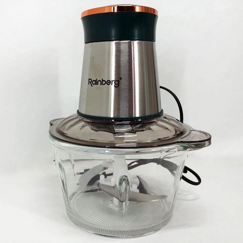 Измельчитель Блендер со стеклянной чашей Rainberg RB-2201-этот небольшой, но очень полезный прибор буквально работает за вас: просто засыпьте ингредиенты в чашу, нажмите на кнопку, и он все сделает сам. Для крупной нарезки достаточно всего нескольких быстрых нажатий. Если же вы хотите измельчить ингредиенты, подержите кнопку несколько секунд. Прибор такой мощный, что может размолоть продукты до состояния пюре! Секрет эффективной и быстрой работы измельчителя заключается в двойном ноже из качественной нержавеющей стали и мощном моторе. Вместительная чаша объемом 2 литра позволяет готовить большое количество продуктов. Преимущества: - Эффективная и быстрая работа - Нож из качественной нержавеющей стали - Мощный мотор - Вместительная чаша объёмом 2 литра - Легко мыть - Безопасная система включения - Измельчает лед и другие любые продукты Характеристики: - Производитель: Rainberg - Тип: Измельчитель - Материал ножей: нержавеющая сталь марки 420 (надеваются на штырек в центре чаши) - Материал корпуса, чаши : сталь, пластик, стекло - Мощность, Вт:1300 - Объем чаши: 2 литра - Количество скоростей: 2 - Питание: 220-240 В - Для защиты двигателя следует использовать непрерывную работу не более 2 минут - Вес в упаковке, кг: 2,500 - Длина шнура электропитания: 0,8 м Комплектация: - 1 х Измельчитель - 1 х Емкостная чаша; - 1 х Фирменная упаковка