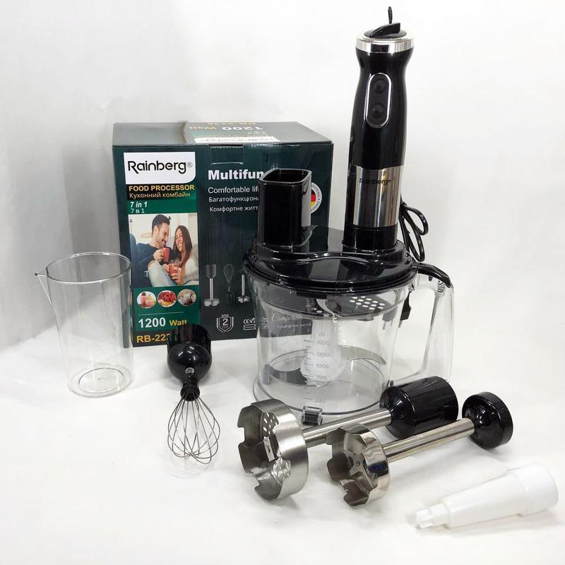 Многофункциональный погружной мульти блендер 4в1 rainberg rb-2238 измельчитель 1200 вт, мо...