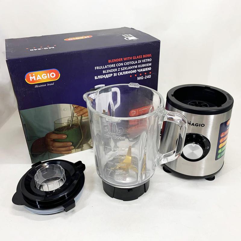 БлендерMAGIO MG-240– це стильний та потужний помічник, призначений для тих, хто цінує якість, надійність та зручність. Завдяки мотору на 1000 Вт він легко справляється з приготуванням смузі, сорбету, дитячого харчування, а також ефективно коле лід, що робить його універсальним вибором для будь-якої кухні. Його скляна чаша об’ємом 1,5 літра – міцна, зручна у догляді та абсолютно безпечна для гарячих чи холодних інгредієнтів. Гострі металеві леза забезпечують ідеальну консистенцію навіть найщільніших продуктів, а дві швидкості роботи та імпульсний режим дозволяють точно контролювати процес подрібнення. Корпус із нержавіючої сталі надає пристрою сучасного вигляду і одночасно гарантує довговічність. Завдяки антиковзким ніжкам блендер стійко тримається на поверхні, а система захисту від перегріву подбає про безпеку під час інтенсивного використання. MAGIO MG-240 – це надійність, яка завжди під рукою. Він не просто блендер, а вдале поєднання функціональності та стилю, яке стане ідеальним доповненням до вашої кухні.