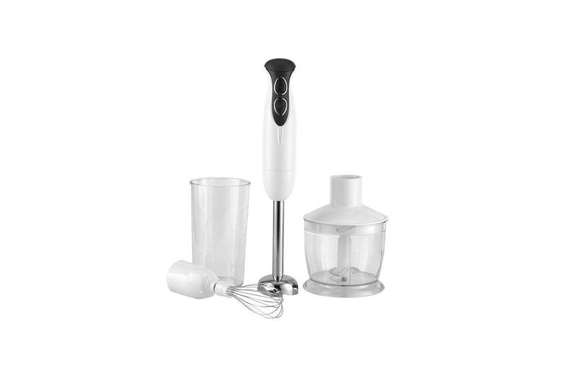Современный эргономичный дизайн, возможность крепления к стене, удобство и простота в пользовании и чистке, ножи из нержавеющей стали (мини-измельчитель, погружной блендер)