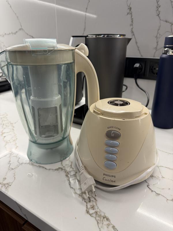 Блендер Philips Cucina у відмінному робочому стані. Особливості: • Бренд: Philips Cucina • Стан: б/у, гарний • Повна оригінальна комплектація • Прозора чаша з мірними позначками • Кнопкове керування з кількома швидкостями • Функція Quick Clean для швидкого очищення • Працює як новий Ідеально підходить для приготування смузі, коктейлів, пюре та інших страв. Усі деталі оригінальні, технічний стан відмінний. Готовий до використання.