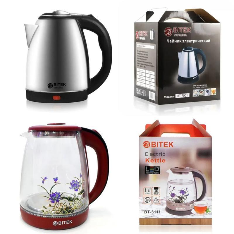Чайник електричний з нержавійки та скла вітек з малюнком і без