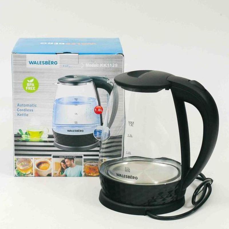 Электрический стеклянный чайник Walesberg KK1129 – хороший и практичный кухонный прибор, долговечный и безопасный для здоровья, позволяющий быстро вскипятить воду для чая или кофе, и просто незаменим на кухне. Это хороший подарок для друзей и личного пользования!