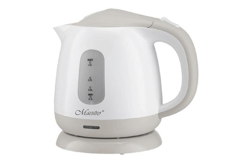 Электрочайник Maestro - MR-012 недорогая функциональная модель для дома. Индикатор уровня воды позволит визуально контролировать объем и доливать воду по мере необходимости до нужной отметки. Показатель мощности в 1100 Вт не превышает возможности электросети, в отличие от многомощных моделей. Термостойкий пластиковый корпус не нагревается, поэтому риск получить ожог рук исключен. Объема в 1 литр будет достаточно для семьи из 3-4 человек. Плоский нагревательный элемент, который скрыт под корпусом кипятит воду намного быстрее, чем модели с Тэнами. Защита от перегрева сработает, если вы случайно забыли долить в чайник воды.