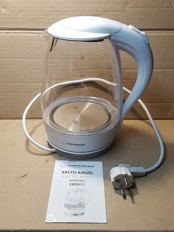 Описание Электрочайник Esperanza EKK 011 W (EKK011W) Электрочайник Esperanza EKK 011 W (EKK011W) Новый электрочайник от польской компании Esperanza - Ваш правильный выбор для кухни. Качественный материал с удобной для очищения поверхностью позволит этому чайнику еще долго прослужить Вам, а стильный внешний вид отлично подойдет под кухню. Благодаря эргономичной ручке - им комфортно пользоваться и держать в руках. Электрочайник Esperanza EKK 011 отлично сочетает высокое качество, безопасность для здоровья и привлекательный дизайн. Этот мощный электрочайник (2200 Вт) с оптимальным объемом 1,7 л имеет скрытый нагревательный элемент из нержавеющей стали, что гарантирует быстрое кипячение и простую очистку. Корпус выполнен из стекла в красивом дизайне, который идеально впишется в интерьер вашей кухни. Наслаждайтесь отличным вкусом Вашего любимого горячего напитка! Электрочайник Esperanza EKK 011 соединен с базой центрального контакта и легко вращается на 360 градусов, что обеспечивает полную свободу перемещения. Специалисты компании позаботились также и о вашей безопасности - в чайнике предусмотрена такая защита, как автоматическое отключение при закипании воды. Это обеспечивает полную безопасность при его эксплуатации.