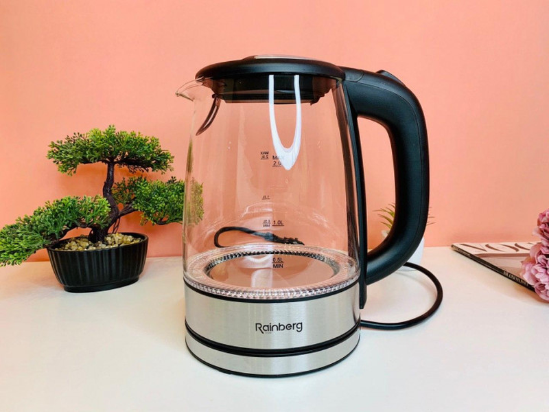 Электрический чайник ,стеклянный rainberg rb-703, 2 литра reinberg