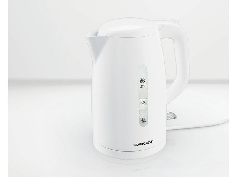 кнопка открытия крышки для работы одной рукой Запираемая крышка для безопасной работы съемный фильтр против накипи, который можно мыть, для легкой очистки изготовлен из пластика, не содержащего BPA мощность: 3000 Вт высокая безопасность благодаря сухому ходу и защите от перегрева прозрачный индикатор уровня воды беспроводной вращающийся чайник на 360° закипит 1 литр воды примерно по 2:37 мин. полезный объем: 1,7 л