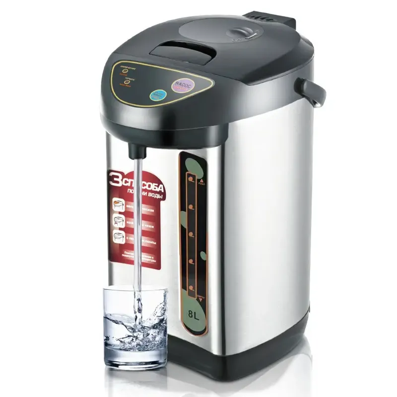 Электрический термопот мощностью 1000 вт с теплоизоляцией 3 типа подачи воды на 8 литров