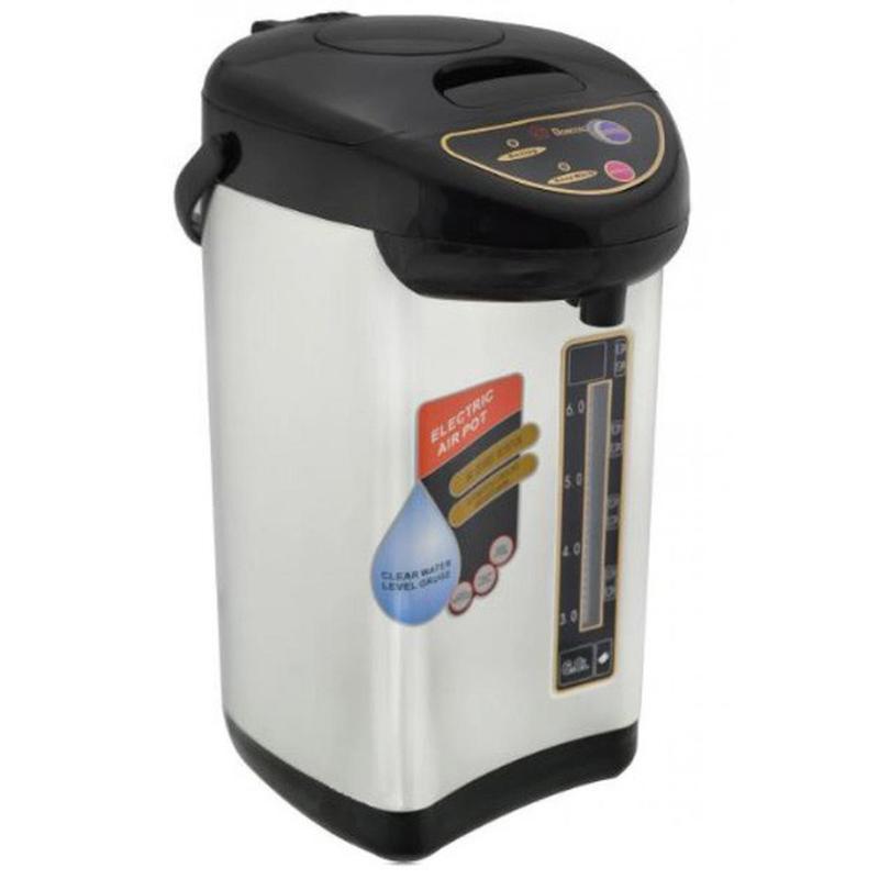 Термопот Domotec MS-6000 сочетает функции чайника и термоса: кипятите воду и продолжает поддерживать ее температуру длительное время. Подача воды происходит с помощью помпы, накачивая вручную необходимое количество воды. Благодаря чему его можно брать с собой, не переживая за наличие розетки под рукой. Есть функция повторного кипячения, позволяющая вскипятить теплую воду за считанные минуты. : Мощность: 750 Вт; Объем: 6 л; Мощность в режиме поддержания температуры: 35 Вт; Материал корпуса: нержавеющая сталь; Функция повторного кипячения; Функция поддержания температуры; Поворот основи на 360° Шкала уровня воды; Питание: 220В 50/60 Гц; Отсоединяемый шнур; Вес: 2.3 кг; Размер: 35 x 28 x 21 см. Комплектация Термопот.