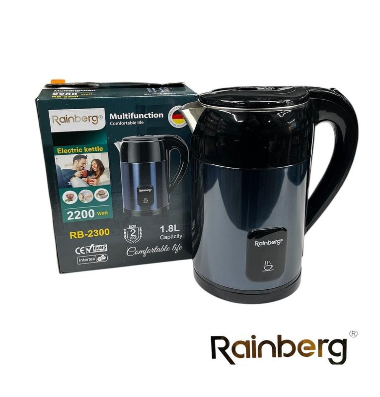 Чайник электрический черный rainberg rb-2300 из нержавеющей стали 2200 вт 1,8л