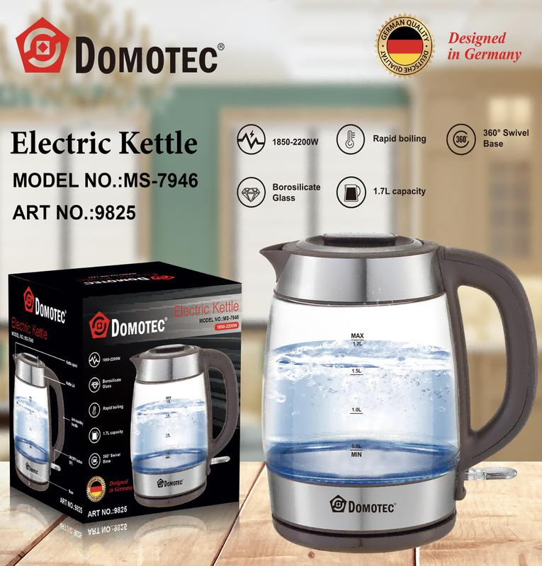 Чайник электрический domatec ms-7946/ 9825 2000 вт 1.7л, стеклянный (16)