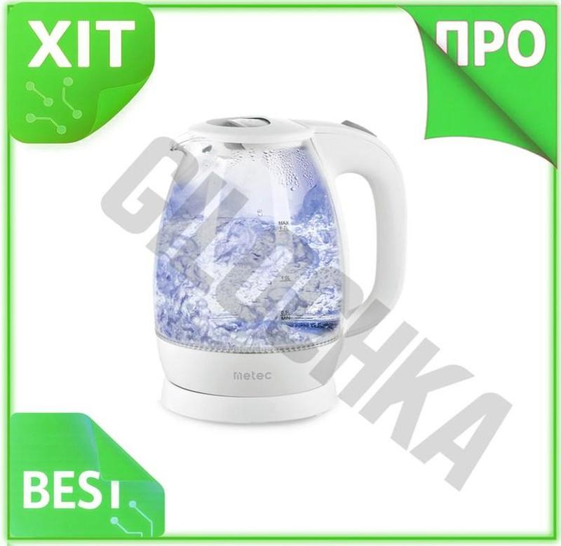 Ve электрочайник стеклянный metec 1,7л new version белый для дома и офиса с защитой от пер...