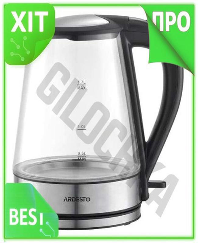 Ve электрочайник ardesto 2150w 1.7л new version дисковый для кипячения воды стеклянный чер...
