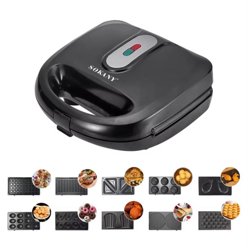 Мультипекарь Sokany 10 в 1 – это компактное и многофункциональное устройство с 10 сменными панелями с антипригарным покрытием для приготовления сэндвичей, вафель, орешков, маффинов, пончиков и других блюд. Индикаторы нагрева и готовности обеспечивают удобное управление и контроль за процессом приготовления. Антипригарное покрытие панелей предотвращает прилипание пищи и легко очищается. После использования достаточно протереть панели салфеткой или вымыть их в теплой воде. Характеристики мультипекаря: Размер мультипекаря: 24 x 23 x 9 см Мощность: 750 Вт Количество панелей: 10 Антипригарное покрытие Преимущества: Два индикатора удобно контролируют процесс приготовления: один показывает, что устройство нагревается, а другой – что оно готово к использованию Высокая мощность для быстрого и равномерного нагрева экономит ваше время Объединяет функции приготовления сэндвичей, вафель, орешков, маффинов и пончиков Мультипекарь Sokany 10 в 1 преобразит вашу кухню в место для творчества и подарит удовольствие от приготовления разнообразных блюд. Благодаря универсальности и простоте использования он станет незаменимым помощником для приготовления вкусных завтраков и ужинов.