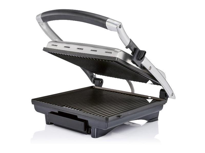 Потужність : 2000 Вт Площа гриля : прибл. 293 x 263 мм (Ш x Г) Матеріал : Литий алюміній КУХОННЕ ІНСТРУМЕНТАРІ SILVERCREST® Прилад для паніні SPM 2000 E2 Характеристики Корпус з легким у догляді та міцним покриттям з нержавіючої сталі Литі алюмінієві пластини для гриля з високоякісним антипригарним покриттям від ILAG® Змінне налаштування контакту верхньої пластини гриля З підсвічуванням – червоний та зелений індикатори ILAG®CERALON: Високоякісне керамічне антипригарне покриття Потужність: 2000 Вт Довжина кабелю: прибл. 1 м Вкл. контейнер для збору соку та скребок для очищення