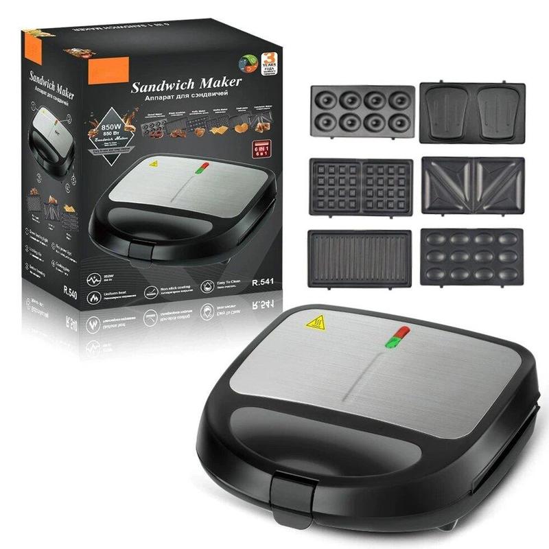 Оснащена шестью сменными пластинамиМультимейкер (мультипекарь) RAF R-541 – это отличный способ сэкономить время и за считанные минуты приготовить горячие бутерброды с самыми разнообразными начинками, пышные вафли, хлебцы, кексы, печенье «орешки», пирожки и пончики. Также, бутербродница поможет легко и непринужденно разнообразить ваше меню приготовленными на гриле овощами, рыбой и мясом. Мультимейкер (мультипекарь) RAF R-541 оснащена шестью сменными пластинами.Мультимейкер (мультипекарь) RAF R-541 поможет приготовить быстрый и оригинальный обед от закуски до десерта!Благодаря антипригарному покрытию на поверхности пластин подрумянившиеся изделия легко извлекаются из формочек. Удобные и не нагревающиеся во время работы ручки плотно смыкаются и фиксируются специальным замком. Ещё одно преимущество использования бутербродницы в том, что ухаживать за устройством после готовки легко и удобно. Благодаря съемным панелям мойка бутербродницы занимает секунды.Характеристики:Производитель: RAF Модель: R-541Тип: мультимейкер (мультипекарь)Исполнение: аппарат 6 в 1Пластины для приготовления: бутербродов, бельгийских вафель, орешков, пончиков, кексов, гриляМощность: 850 ВтОсобенности: антипригарное покрытие, индикатор нагрева, индикатор работы, ненагревающаяся ручка, съемные панели приготовления, приспособление для хранения шнураЦвет: ЧерныйРазмеры: 54х46.5х34.5