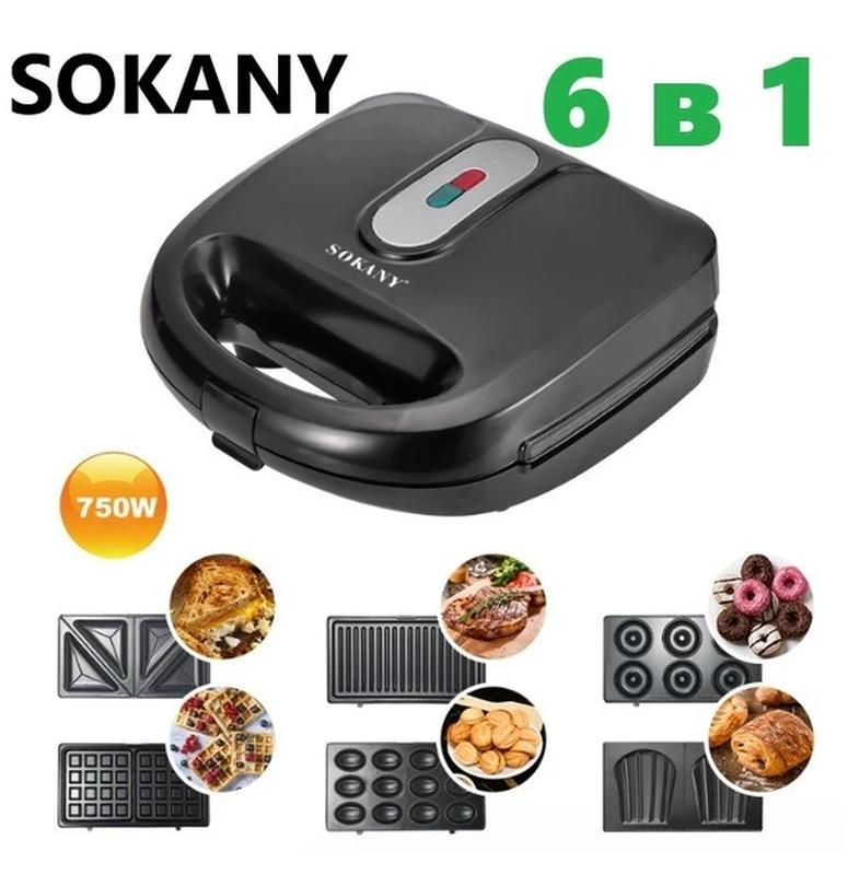 Мультимейкер 6 в 1 750вт sokany sk-908 со сменными формами для вафель, орешков, печенья и...