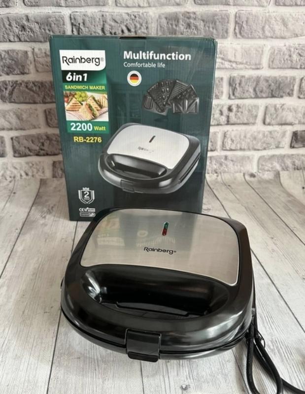 Мультимейкер бутербродница 6 в 1 rainberg rb 2276 2200 вт со сменными насадками
