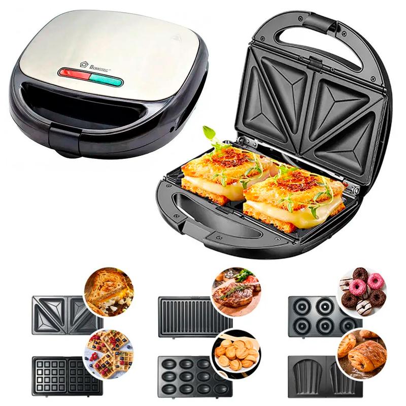 Многофункциональная сэндвичница MS-7706 с насадками - это универсальное решение для приготовления разнообразных блюд Преимущества: - Сэндвичница обладает шестью различными насадками - Высокая мощность - Простота использования - Насадки с антипригарным покрытием - Компактный дизайн Описание: Многофункциональная сэндвичница мультимейкер MS-7706 с шестью различными насадками - это высокопроизводительное и универсальное устройство для готовки разнообразных блюд. С этой сэндвичницей вы можете приготовить сэндвичи, вафли, гриль, а также другие вкусные и креативные закуски, добавляя разнообразие в вашу кулинарную рутину. Эта сэндвичница обладает шестью различными насадками, позволяющими вам готовить разнообразные блюда. Вафельная пластина, сэндвичница, гриль, гладкая и рифленая насадки позволяют вам приготовить сэндвичи, вафли, мясо, рыбу, омлеты и многое другое. Высокая мощность позволяет быстро нагревать насадки, сокращая время приготовления блюд. Характеристики: - Тип: сэндвичница / мультимейкер 6 в 1 / мультипекарь - Материал корпуса: Металл, пластик - Материал пластин: Металл - Мощность: 1000 Вт - Питание: Сеть 220-240 В - Количество отделений: 2. - Количество пластин: 6 - Размеры пластин: 22 х 12 Комплектация: - Бутербродница 1000 Вт, MS-7706 - Сменные насадки 6 шт - Упаковка