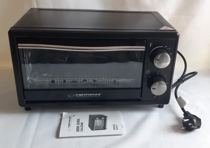 Електрична піч Esperanza EKO007. Електрична піч ESPERANZA EKO007 відзначається компактними розмірами з об’ємом камери 10 літрів, що робить її ідеальним вибором для невеликих кухонь. Завдяки механічному типу керування та чорному металевому корпусу, ця модель є не тільки функціональною, але й стильною доповненням до інтер’єру. ESPERANZA EKO007 оснащена регульованим термостатом, який дозволяє встановлювати температуру від 100 до 250 градусів цельсія, що забезпечує гнучкість при приготуванні різноманітних страв. Функція гриля, внутрішня підсвітка та автовимкнення роблять процес приготування зручнішим, а звуковий сигнал таймера на 30 хвилин інформує про завершення роботи. У комплектацію входять лоток для піци, решітка для гриля та лоток для крихт, що розширює можливості використання печі. Потужність у 0.9 кВт та програми верхнього та нижнього нагріву гарантують ефективність та економію енергії. Прогумовані ніжки забезпечують стійкість, а індикатор роботи повідомляє про стан пристрою. ESPERANZA EKO007 - це високоякісний продукт з Польщі, який поєднує в собі надійність та сучасний дизайн. Об'єм, л 10/ Діапазон температури 100-250 °С. Кількість режимів приготування 1. Функції приготування Гриль. Таймер 30 хв. Особливості Автовимкнення. Внутрішня підсвітка. Звуковий сигнал. Таймер.