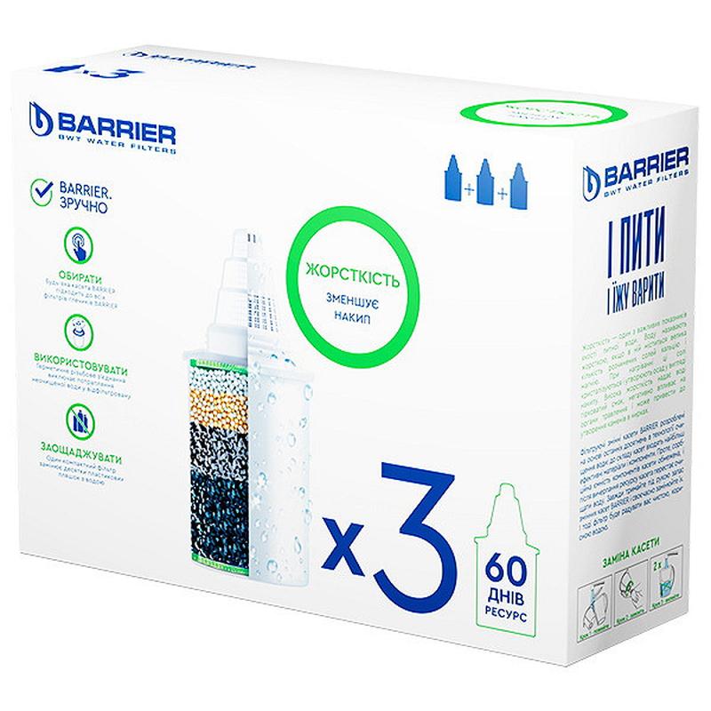 Описание Барьер "Жесткость" картридж Сменная кассета для фильтров кувшинов Барьер Жесткость очищает водопроводную воду от нежелательных примесей: от хлора, хлороформа, тяжелых металлов, железа, пестицидов, нефтепродуктов, очищает от нерастворимых примесей, фармацевтических препаратов. Усиленная очистка воды с повышенным содержанием солей жесткости. Картридж барьер Жесткость подходит ко всем кувшинам Барьер! Эффективность очистки в кассете Барьер Жесткость : хлор свободный и активный - 100%; фенол, бензол - 100%; линдан - 95-99%; ДДТ - 97-99% Скорость фильтрации картриджа Барьер 6: 250-300 мл/мин Ресурс сменной кассеты: 350 литров (ресурс может изменяться в зависимости от качества исходной воды) Фильтр Барьер 6 включает в свой состав: ионообменную смолу, эффективно снижает содержание ионов кальция и магния в воде, кокосовый активированный уголь, обработанный серебром При замене модулей в фильтрах кувшинах Барьер стоит руководствоваться следующим графиком: 1-2 человека - не реже чем через 60 дней. От трёх человек и более - не реже одного раза в месяц.