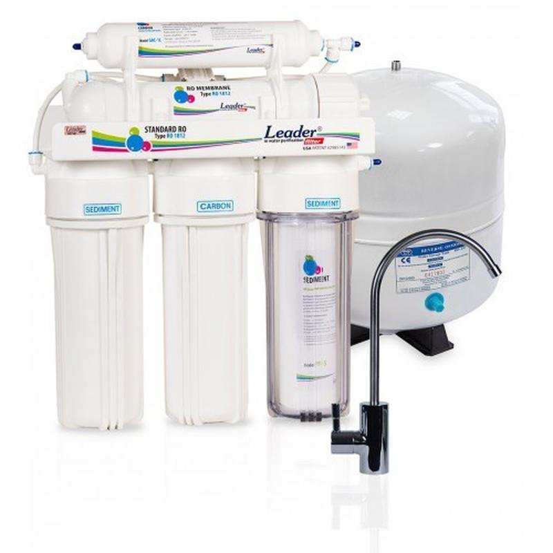 Виробник: Інший виробник Вид: Фільтри зворотного осмосу Зворотний осмос – унікальний метод очищення води, дозволяє видалити з води до 99.98% забруднень! Цей фільтр не тільки поліпшить смак і запах води, але і видалить з неї такі шкідливі речовини як: нітрати, пестициди, свинець, миш'як, сірководень, залізо, хлор. Крім того, завдяки сверхмелкому розміру фільтруючого клітинки (10-10м), що в 10000 тонше людської волосини і в 1000 разів менше кишкової палички: більшість відомих бактерій і вірусів не потраплять до вас в суп або чай. Система зворотного осмосу Leader RO-5 складається з 5 стадій очищення води: 1-я стадія – поліпропіленовий картридж Leader PP-5 для очищення води від механічних домішок, таких як пісок і іржа. Основним завданням цього етапу очищення є захист наступних фільтруючих елементів від впливу на них різних суспензій. 2-я стадія – вугільний блок Leader CTO-10 з активованим вугіллям затримує залишилися механічні домішки і хлорорганічні забруднення. Служить для очищення води від хлорорганічних сполук, які негативно впливають на мембрану зворотного осмосу. 3-я стадія – поліпропіленовий картридж Leader PP-1 для очищення води від механічних домішок, таких як пісок і іржа розміром більше 1 мкм. 4-я стадія – мембрана зворотного осмосу TFC TW30-1812-75. Мембрана – «головний фільтр», завдяки спеціальному пристрою затримує до 99.8% всіх відомих забруднення, включаючи бактерії, віруси, грибки тощо 5-я стадія – вугільний постфільтр Leader GAC-1L. Служить для корекції смакових властивостей води. Увага! У разі якщо тиск у водопроводі менше 3 атм необхідно встановити підвищуючий насос, а у разі якщо тиск перевищує 6 атм – встановити регулятор тиску (редуктор)! Характеристики: Тип установки — під кухонну мийку Тип мембрани — 75GPD Тип картриджів — Slim 10" макс. Продуктивність — 11,8 л/год Об'єм бака 18 л, Об'єм очищеної води — 15 л Матеріал бака пластик Тип крана — модерн одинарний Розмір фільтра (ВхШхГ) — 450х370х150 мм Розмір бака (ВхШ) — 400х280 мм Робочий тиск — 3-5 бар Робоча температура — 5-40 °З підключенням — 1/2" Комплектація: Фільтр в зборі — 1 шт. Набір картриджів — 1 шт. Набір для підключення — 1 шт. Накопичувальний бак — 1 шт. Кран для чистої води — 1 шт. Інструкція — 1 шт. Схожі товари