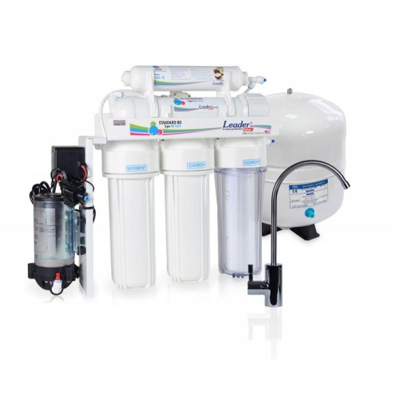 Виробник: Інший виробник Вид: Фільтри зворотного осмосу Зворотний осмос – унікальний метод очищення води, дозволяє видалити з води до 99.98% забруднень! Цей фільтр не тільки поліпшить смак і запах води, але і видалить з неї такі шкідливі речовини як: нітрати, пестициди, свинець, миш'як, сірководень, залізо, хлор. Крім того, завдяки сверхмелкому розміру фільтруючого клітинки (10-10м), що в 10000 тонше людської волосини і в 1000 разів менше кишкової палички: більшість відомих бактерій і вірусів не потраплять до вас в суп або чай. Система зворотного осмосу Leader RO-5 P складається з 5 стадій очищення води і підвищення вищувального насоса: 1-я стадія Leader PP-5 – картридж очищення води від механічних домішок, таких як пісок і іржа розміром більше 5 мкм. Основним завданням цього етапу очищення є захист наступних фільтруючих елементів від впливу на них різних суспензій. 2-я стадія Leader CTO-10 – вугільний блок з активованим вугіллям затримує залишилися механічні домішки і хлорорганічні забруднення. 3-я стадія Leader PP-1 – картридж очищення води від механічних домішок, таких як пісок і іржа розміром більше 1 мкм. Основним завданням цього етапу очищення є захист наступних фільтруючих елементів від впливу на них різних суспензій. 4-я стадія TFC TW30-1812-75 – мембрана зворотного осмосу. Мембрана – «головний фільтр», завдяки спеціальному пристрою затримує до 99.8% всіх відомих забруднення, включаючи бактерії, віруси, грибки тощо 5-я стадія Leader GAC-1L – вугільний постфільтр. Служить для корекції смакових властивостей води.
