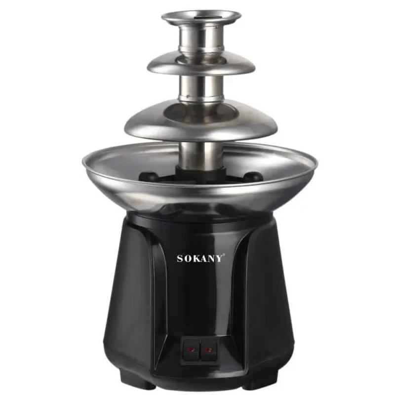 Шоколадний фонтан SOKANY SK-07069 – компактний девайс, призначений для розплавлення та подачі шоколаду у вигляді каскадного водоспаду. Модель ідеально підходить для використання вдома, на невеликих вечірках, сімейних святах чи фуршетах. Пристрій забезпечує стабільну роботу та підтримку шоколадної маси в рідкому стані. Переваги Універсальність: прилад підходить для роботи зі спеціальним шоколадом для фондю, а також якісним кулінарним шоколадом з додаванням олії. Декоративна функція: фонтан є яскравим доповненням до будь-якого святкового столу, виконуючи функцію оригінального десерту та елемента декору. Економічність: компактний розмір та невелика витрата шоколаду роблять його вигідним рішенням для домашнього використання. Оптимальна потужність: забезпечує швидке нагрівання та ефективну підтримку температури шоколаду, запобігаючи його загустіванню. Матеріал: основні елементи, що контактують з продуктом (чаша і вежа), виготовлені з якісної нержавіючої сталі. Це гарантує довговічність, гігієнічність та корозійну стійкість. Конструкція: фонтан має три яруси, що створює естетично привабливий та стабільний потік. Важливо: При використанні шоколадного фонтану потрібно використовувати спеціальний шоколад для фондю (або кулінарний шоколад з високим вмістом какао-олії), або додавати трохи олії, щоб забезпечити її необхідну текучість. Звичайний шоколад може бути дуже густим і не стікати правильно. Характеристики: Матеріал: нержавіюча сталь, пластик Потужність: 60 Вт Режими роботи: нагрівання, нагрівання + обертання (підйом рідкого шоколаду на верхній ярус) Управління: механічне