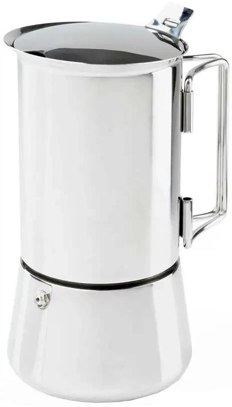 GSI Moka Espresso – кофеварка гейзерного типа на 6 порций. Выпускается из пищевой нержавеющей стали по технологии Glacier Stainless, которая совершенно не влияет на вкус напитка, легко очищается и обеспечивает долгий срок службы изделия. Складная ручка позволяет компактно разместить посуду в походном снаряжении. Гейзерные кофеварки очень популярны в во всем мире, за счет того, что кофейная гуща не попадает в чашку, а остается в отдельном резервуаре, также стоит отметить невозможность вскипания кофе. С кофеваркой GSI Moka Espresso можно быть всегда уверенным в том, что ароматный кофе будет быстро и легко приготовлен в условиях кемпинга, в походе или на рыбалке.
