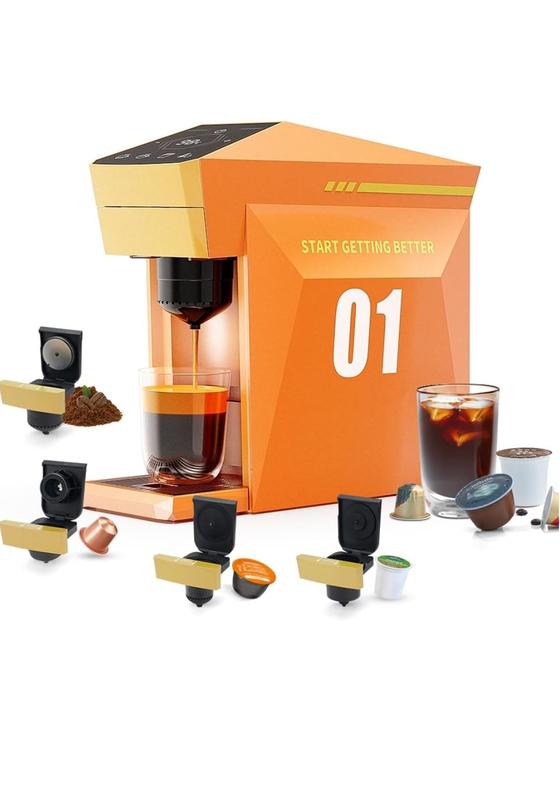 Кофеварка BENFUCHEN 4 в 1 для приготовления одной порции кофе, эспрессо-машина на 19 бар, подходит для капсул K-Cup/Nespresso OriginalLine/Dolce Gusto/молотого кофе, ярко-оранжевого цвета. наличие уточник актуально на 12.12.25