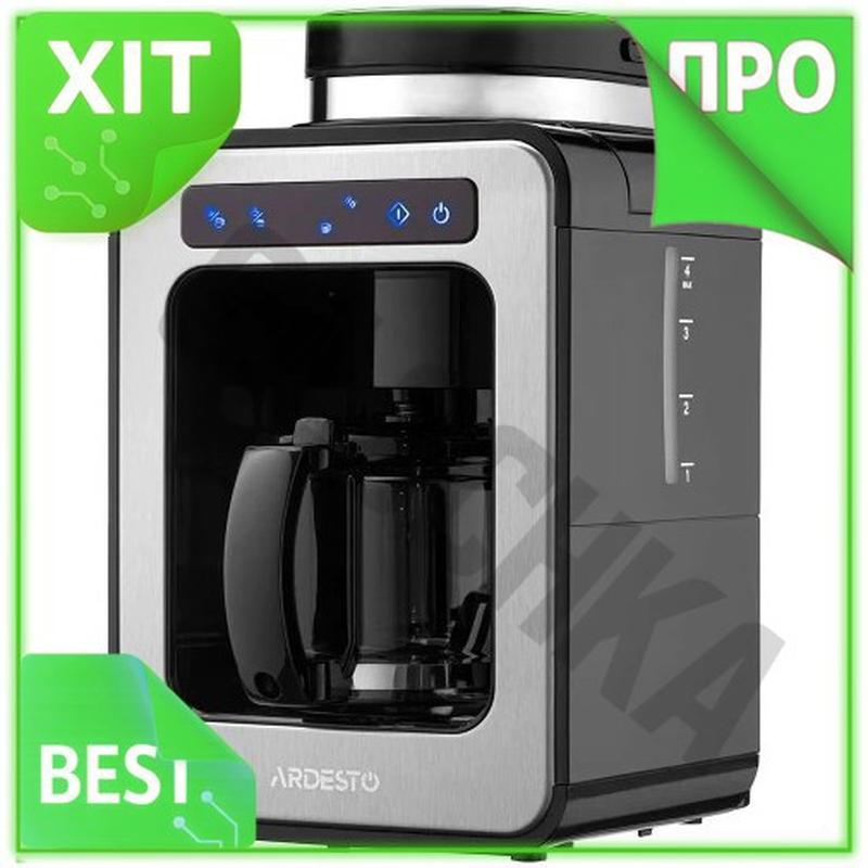 Ve кофеварка ardesto 600 вт new version капельная для молотого кофе и зерен черная серебри...