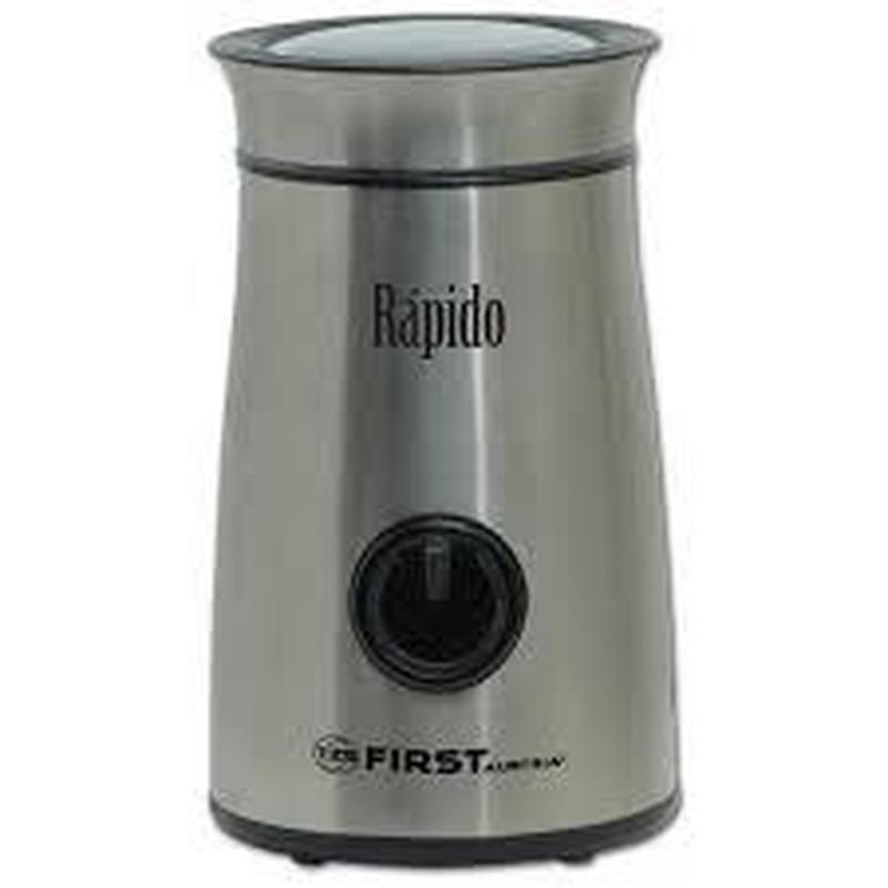 Кілька примірників у наявності Бренд: First Тип: Кавомолка електрична Основні характеристики Механізм подрібнення: ротаційний ніж (2 лопаті) Місткість, г: 50 Потужність, Вт: 150 Матеріал корпусу: нержавіюча сталь Кількість режимів помелу: 1 Колір: нержавіюча сталь Оснащення Дозатор: немає Таймер: немає Знімна завантажувальна чаша: немає Резервуар для меленої кави: немає Пристосування для намотування шнура: да, відсік для зберігання шнура Додаткові функції Регулювання ступеня помолу: немає Блокування включення при знятій кришці: немає даних Додатково: Лезо з нержавіючої сталі; Pulse Функція; аварійний вимикач. Матеріал: Нержавіюча сталь