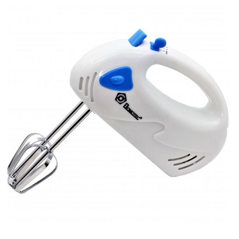 Ручной миксер Domotec MS-1355 относится к типу довольно компактных, но очень мощных моделей с мотором, максимальной мощностью 200 Вт. Данный прибор оборудован 7 скоростными режимами работы, позволяющими эффективно взбивать продукты различной плотности. В комплекте с миксером Вы найдете дополнительные крюки для замешивания теста, что по достоинству смогут оценить те хозяйки, которые любят радовать свою семью различными выпечками. Характеристика: - Тип: миксер - Количество скоростей: 7 - Питание: 220V 50Hz - Мощность: 200W - Материал корпуса: пластик - Кнопка для удобной экстракции насадок - Длина кабеля питания: 90 см - Размер миксера: 17,5x7x12 см - Количество скоростей: 7 - Цветовое исполнение: белый с серыми вставками Комплектация: - Миксер - 2 шт насадка для взбивания - 2 шт насадка для теста - Инструкция - Коробка Насадки: - Насадка для взбивания: 2 шт - Насадка для теста: 2 шт
