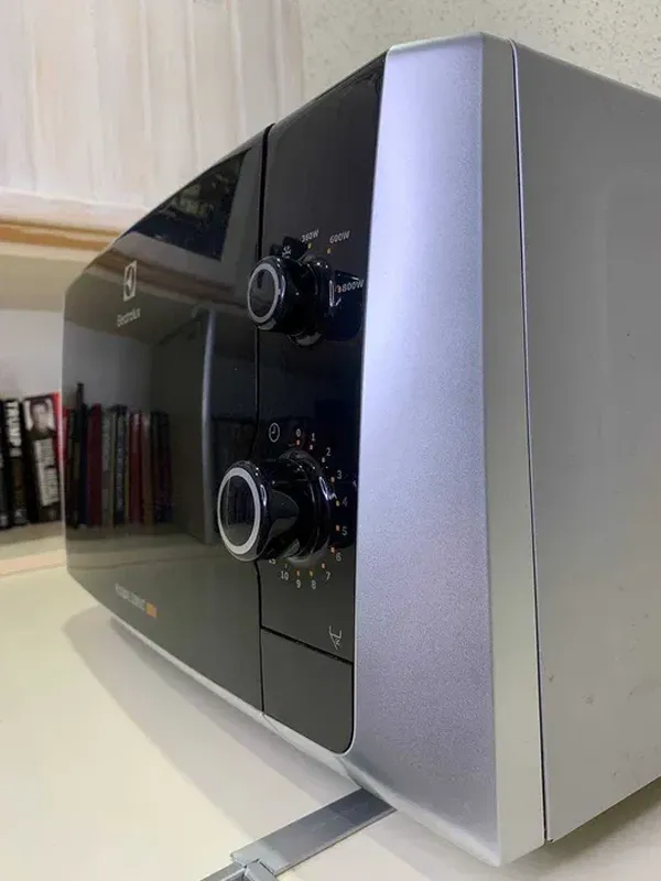 Микроволновая печь Electrolux EMM21000S в идеальном состоянии Общие характеристики Тип СВЧ: Соло Объем камеры: 18,5 л Внутреннее покрытие: Эмаль Выходная мощность микроволн: 800 Вт Потребляемая мощность, Вт: 1250 Вт. Уровней мощности: 5 Тип управления: Механическое Тип переключателей: Поворотные Режимы: Автоматический разогрев; Размораживание Физические характеристики Открывание дверцы: Кнопка Направление открытия: Влево Диаметр поддона: 27 см Цвет корпуса: Серебристый Габариты (ВхШхГ): 28,7 х 48,5 х 42,2 см Бренд: Electrolux